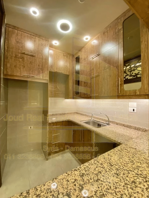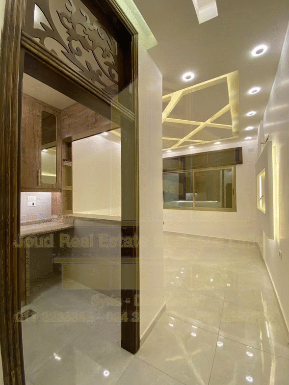 شقة سكنية أنيقة للبيع في قدسيا – خياطين، منتصف شارع الروضة، بناء المسابح، بموقع راقٍ ومخدم بالكامل.