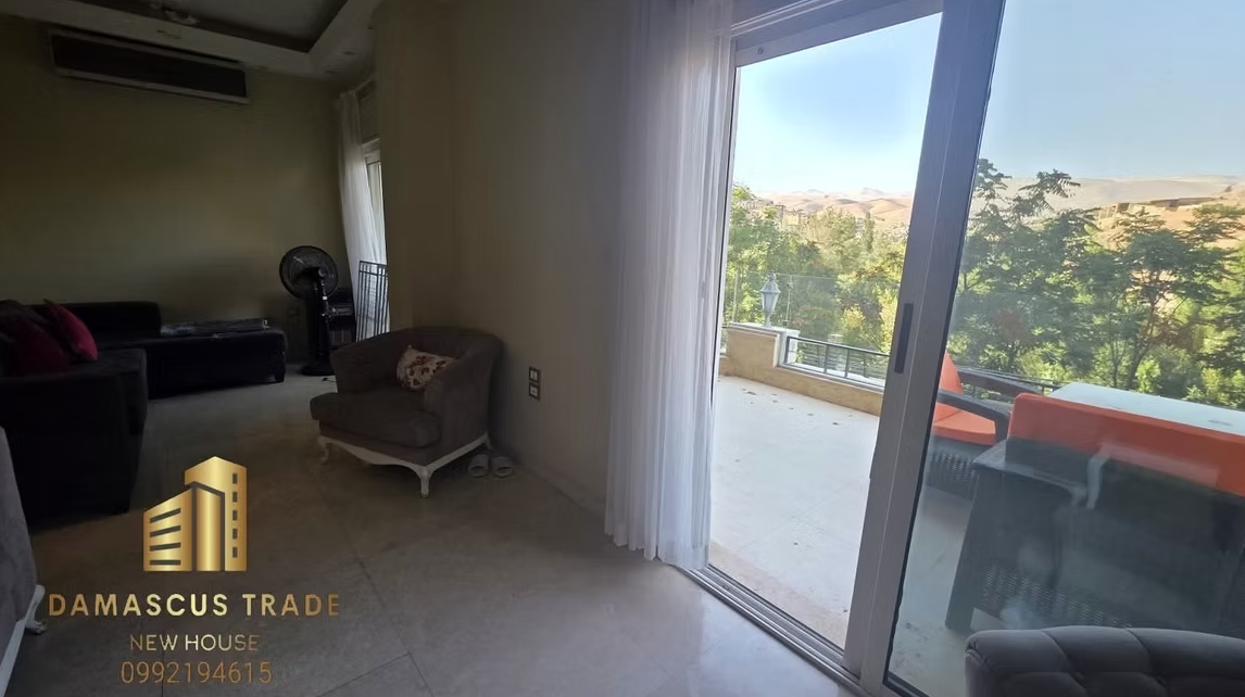 شقة فاخرة بموقع مميز تجمع بين إطلالة بانورامية على وادي بردى وسحر الطبيعة مع حديقة خاصة وتراس واسع لتجربة سكن راقية ومريحة.
